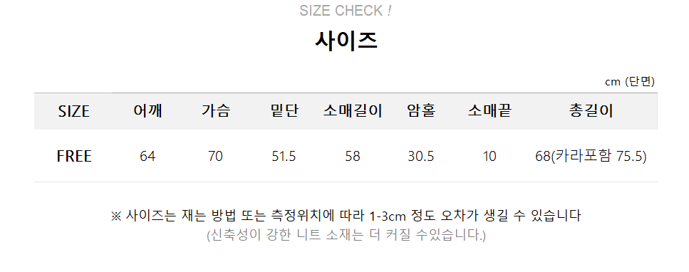 | 제품 측정 방법에 따라 1~3cm 오차가 발생할 수 있으며, 사이즈는 단면으로 측정됩니다 | ||||