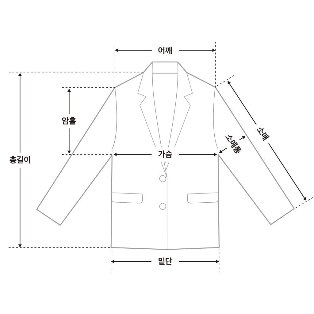 | 어깨단면 | 가슴단면 | 암홀단면 | 소매기장 | 소매단면 | 총장 | |