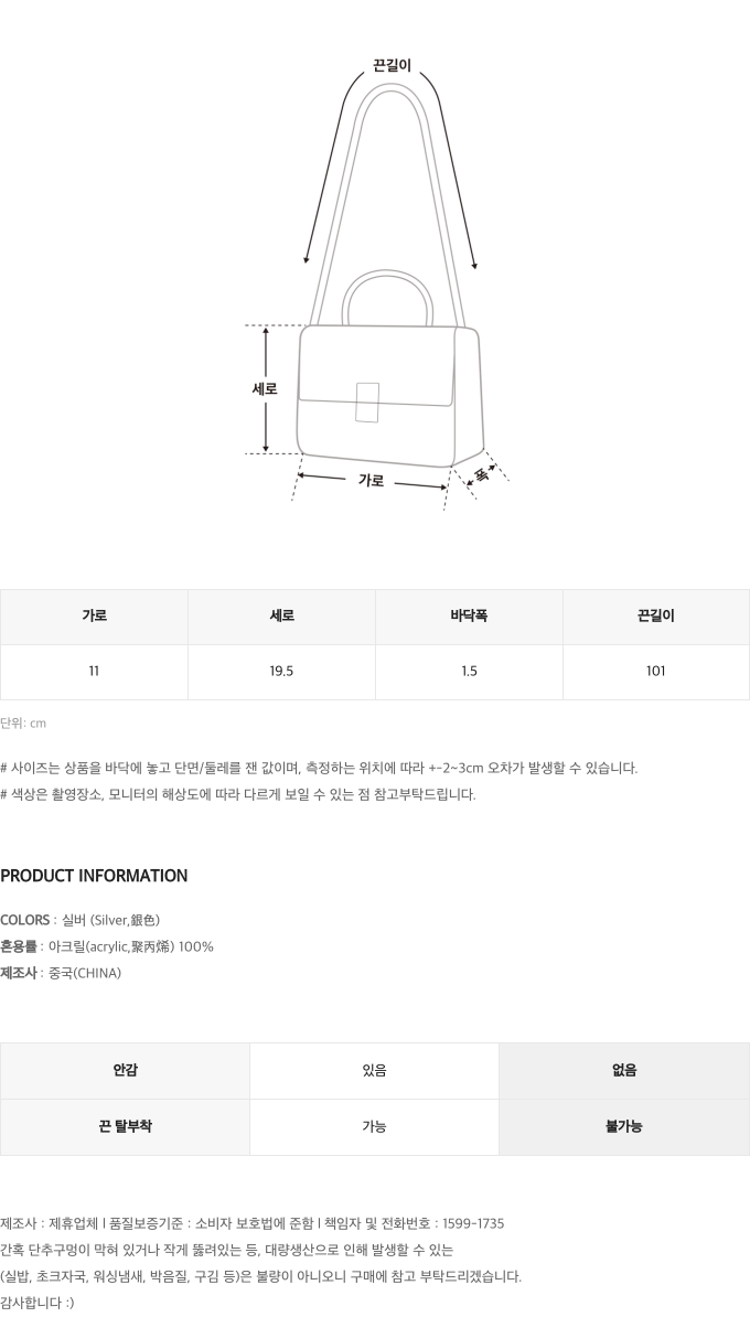 - 어깨끈이 조절되지 않는 적당한 기장감으로