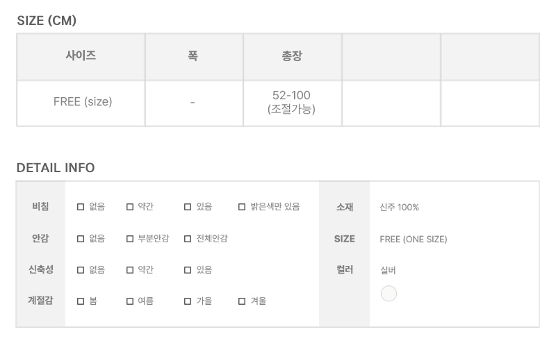 | 제품 측정 방법에 따라 1~3cm 오차가 발생할 수 있으며, 사이즈는 단면으로 측정됩니다 | |