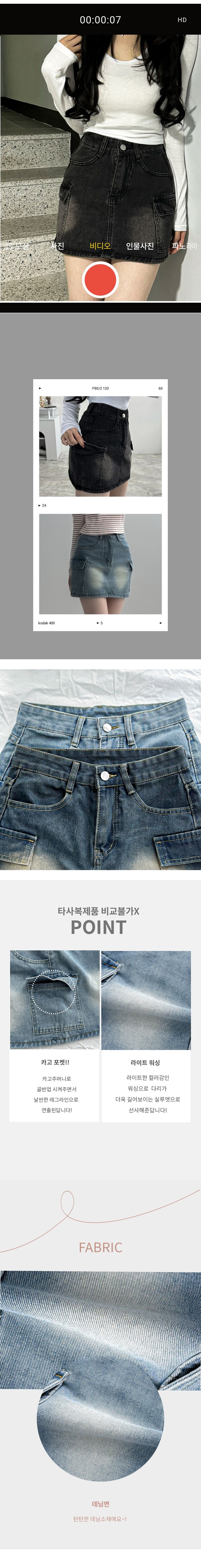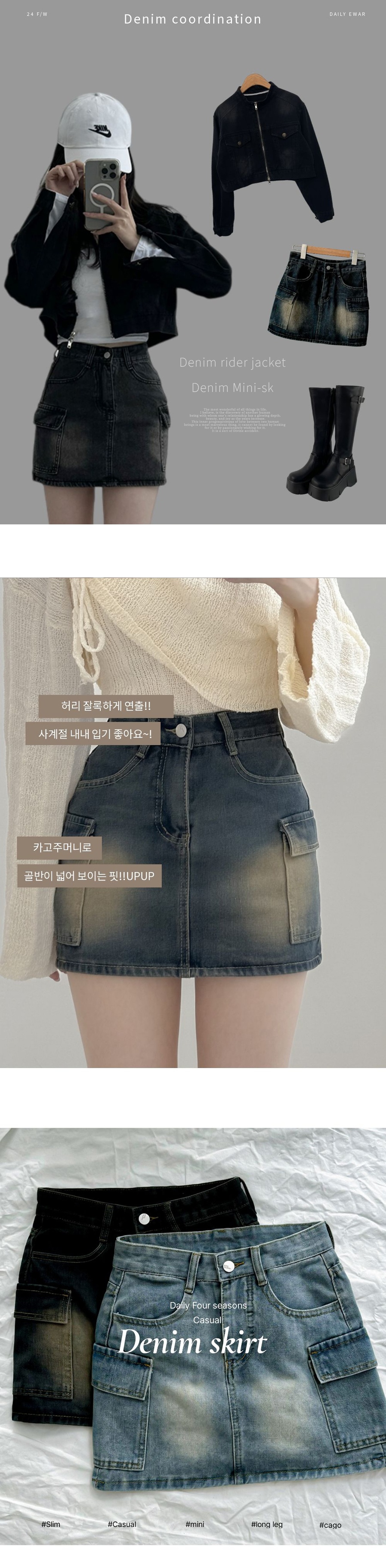 카고 포켓 포인트로 스타일링이 가능하며 탄탄한 데님면소재로