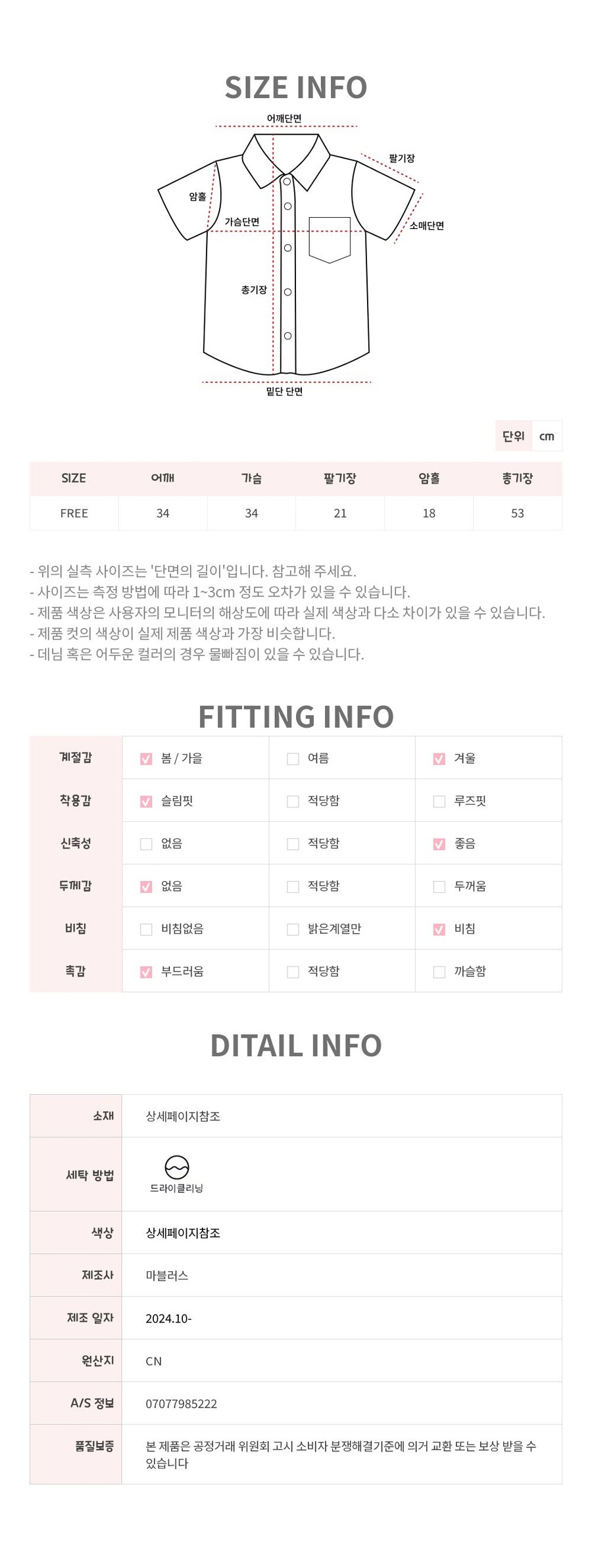어깨 : 34 가슴 : 34 팔길이 : 21 암홀 : 18 총길이 : 53