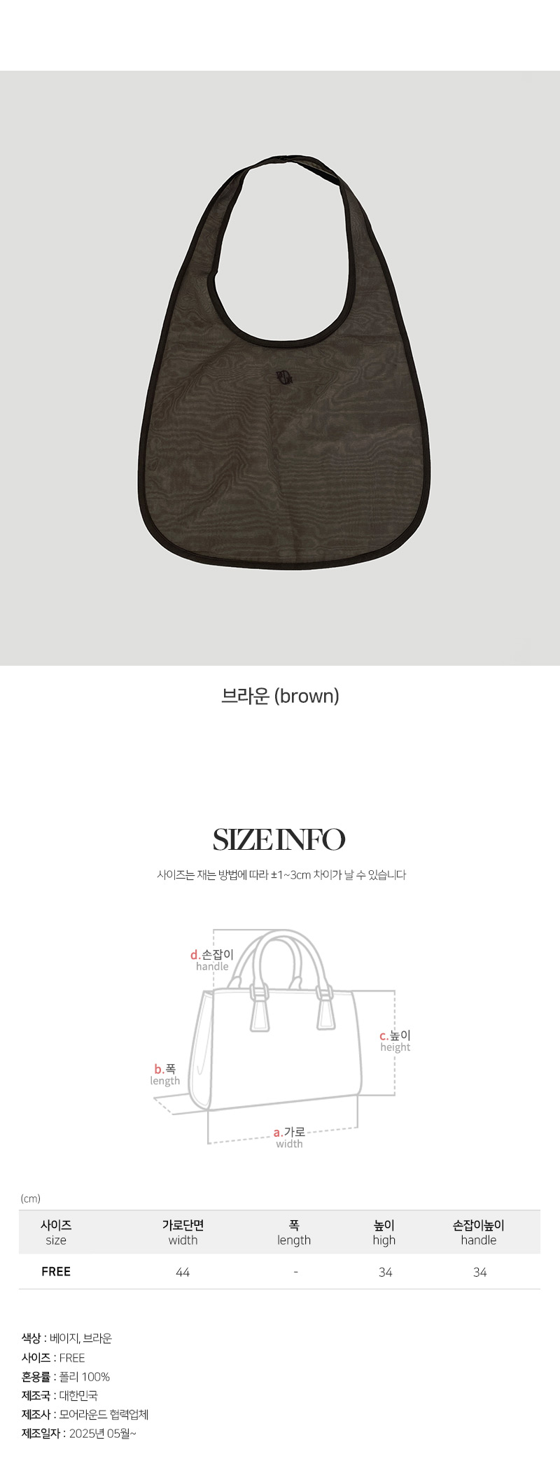 | 제품 측정 방법에 따라 1~3cm 오차가 발생할 수 있으며, 사이즈는 단면으로 측정됩니다 | ||