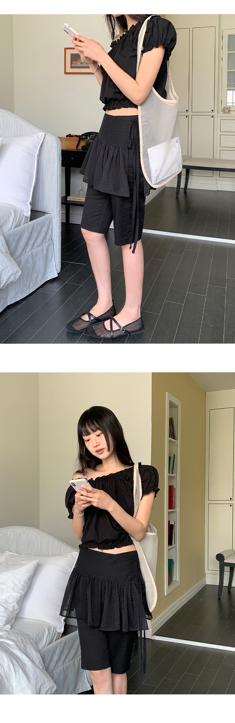 시스루로 내부가 은은하게 비쳐 계절감 있는 스타일링에